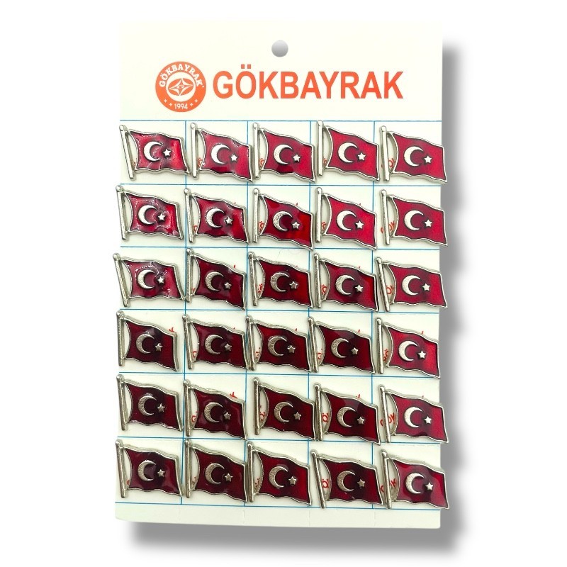 Yaka rozeti,krom bayrak rozet zamak malzemeden mine kaplama yapılarak üretilmiştir. Kendinden dalgalı kaynak iğneli ve klipsli olup ölçüsü 12x20 mm olmaktadır.